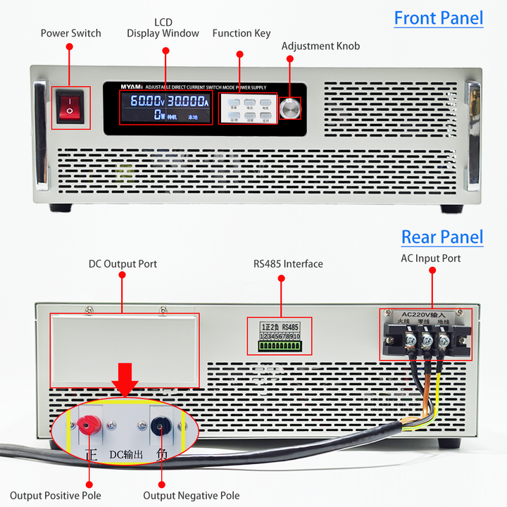 Fuente de Alimentación CC Programable de Alto Rendimiento y Alta Potencia MYAMI de 19 Pulgadas y 3U para Montaje en Rack, 3000 W, 20 V, 150 A, Rectificador CC Ajustable