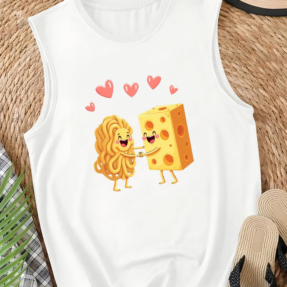 Chaleco Casual de Punto para Mujer con Personajes de Macaroni and Cheese y Logotipo Frontal, Spandex/Poliéster