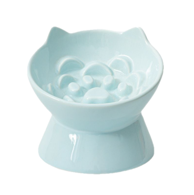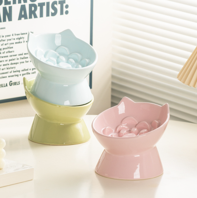 Comedero Lento para Gatos de Cerámica Color Macaron, Comedero Elevado para Gatos con Diseño de Rosa, Comedero Lento Antivómito para Gatos, Comedero Elevado para Alimentos