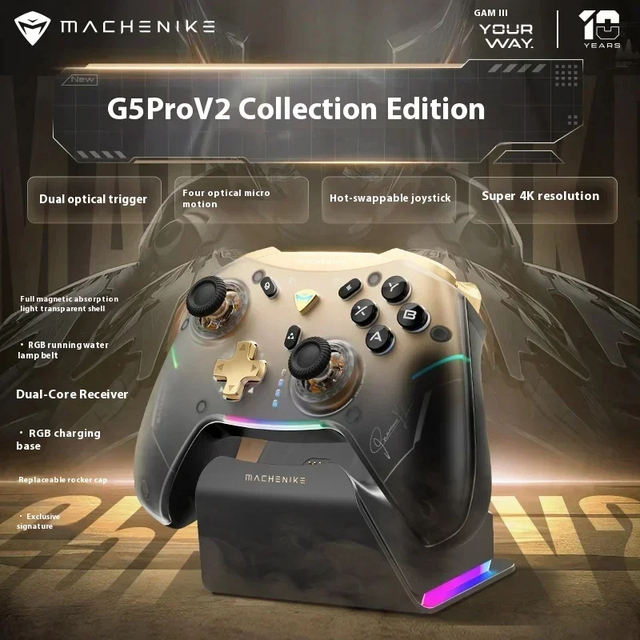Mando de Juego Machenike G5 Pro V2 con Joystick Óptico de Efecto Hall para PC y Switch, Inalámbrico BT/2.4G, Giroscopio de Seis Ejes, Certificado CE