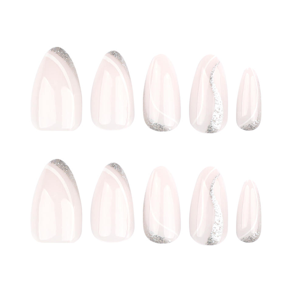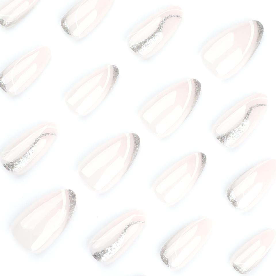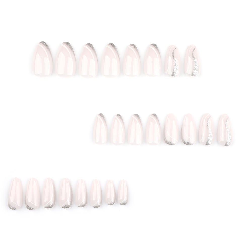 Hecho a máquina 24 piezas almendra estilo francés Gradual Press-On Uñas acrílicas patrón de línea ondulada blanca venta al por mayor diseño de ataúd Artificial