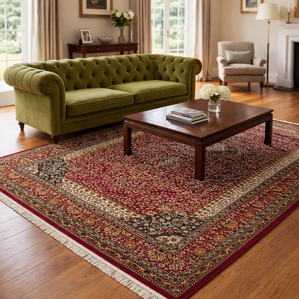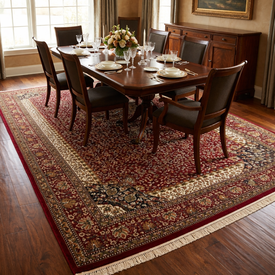Alfombra de Polipropileno Hecha a Máquina, Ecológica, Resistente a las Manchas, Diseño Clásico de Medallón Persa, Floral Rojo, Duradera para el Hogar