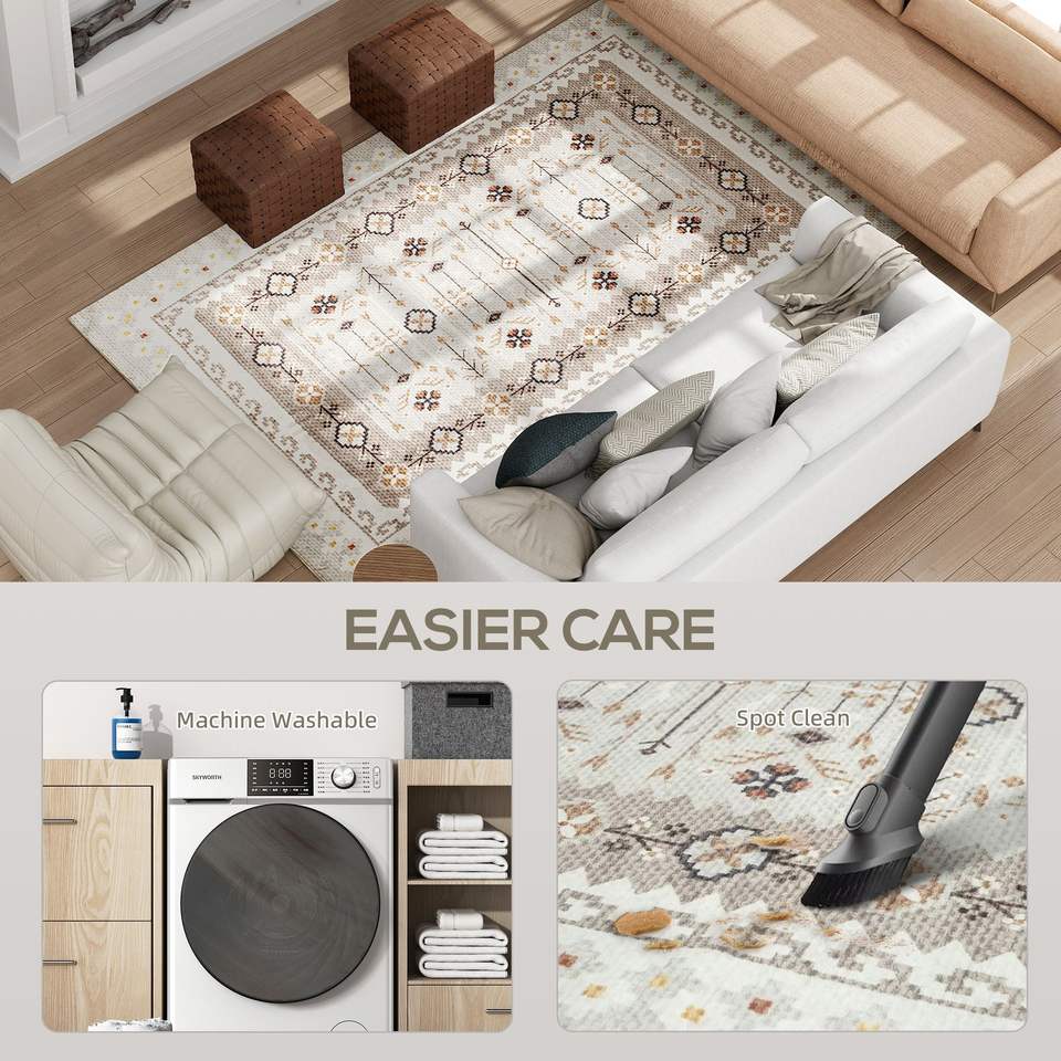 Alfombra Lavable a Máquina de 4x6 con Estampado Boho de Franela, Antideslizante, para Sala de Estar, Dormitorio y Comedor - Marrón