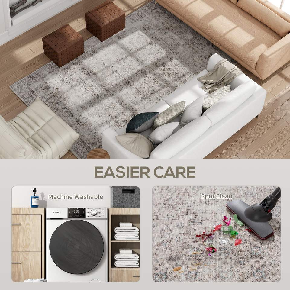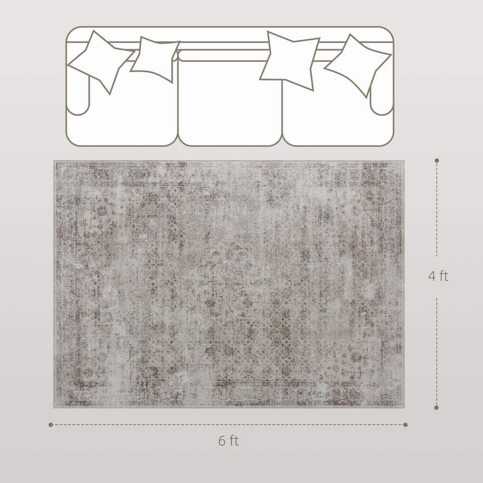 Alfombra Lavable a Máquina de Estilo Tradicional 4x6, Antideslizante, Color Marrón Claro, para Sala de Estar y Dormitorio