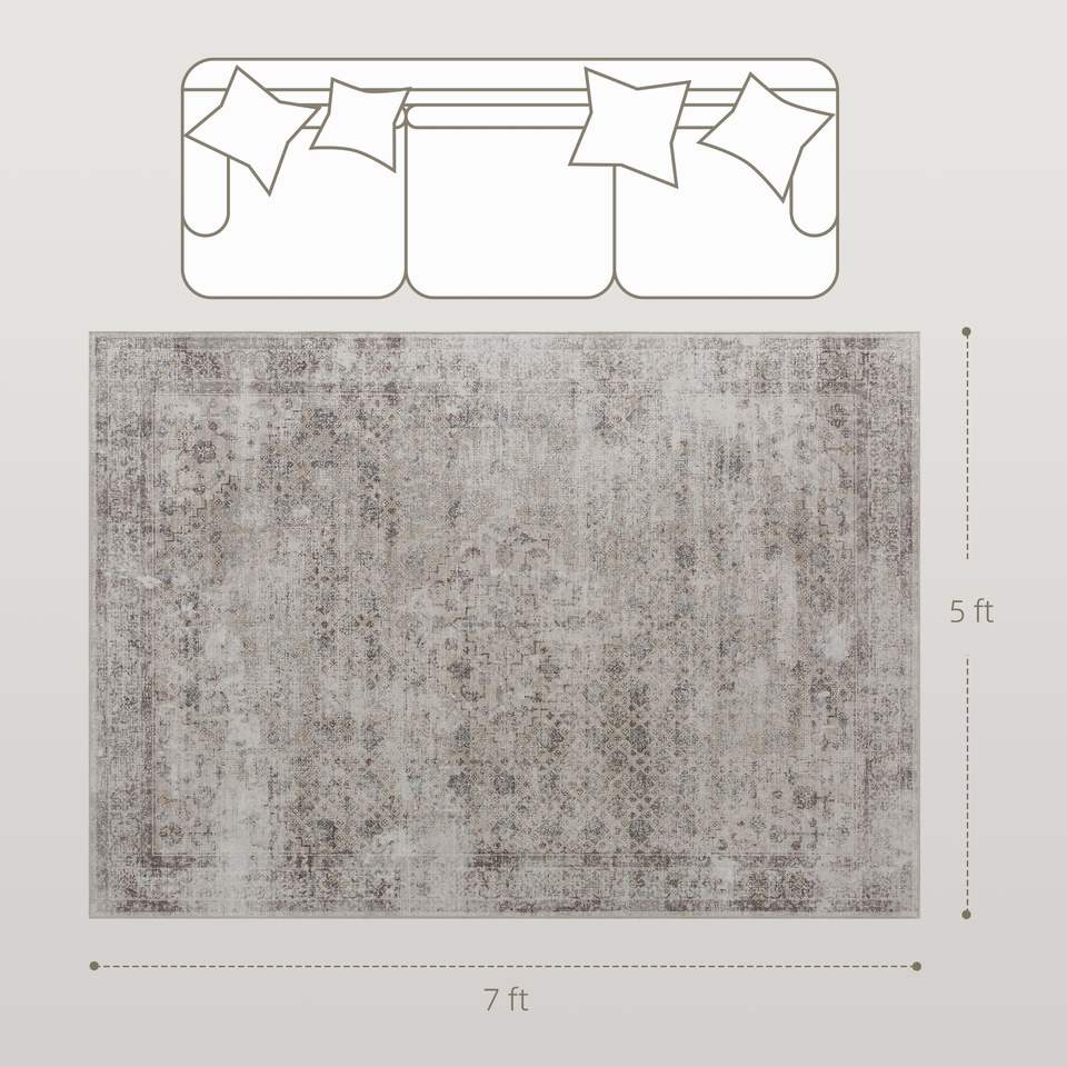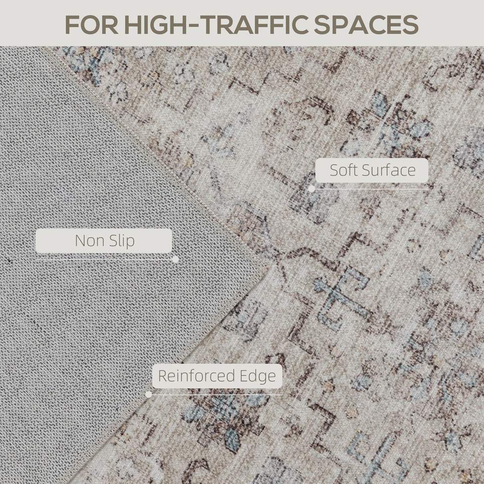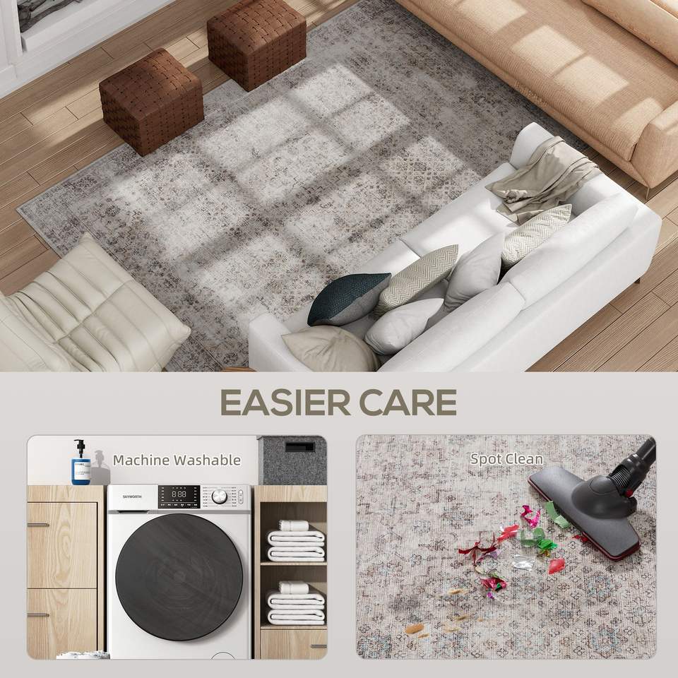 Alfombra Lavable a Máquina de Estilo Tradicional 5x7, Antideslizante, Color Marrón Claro, para Sala de Estar y Dormitorio