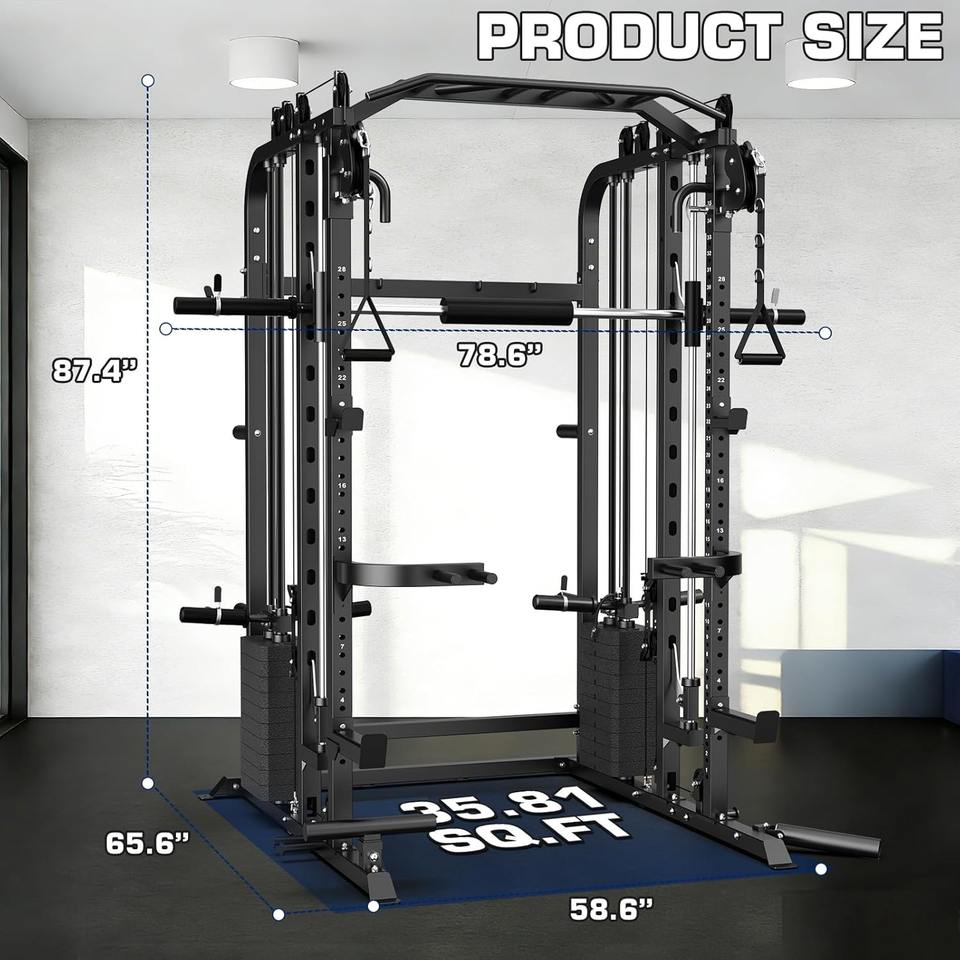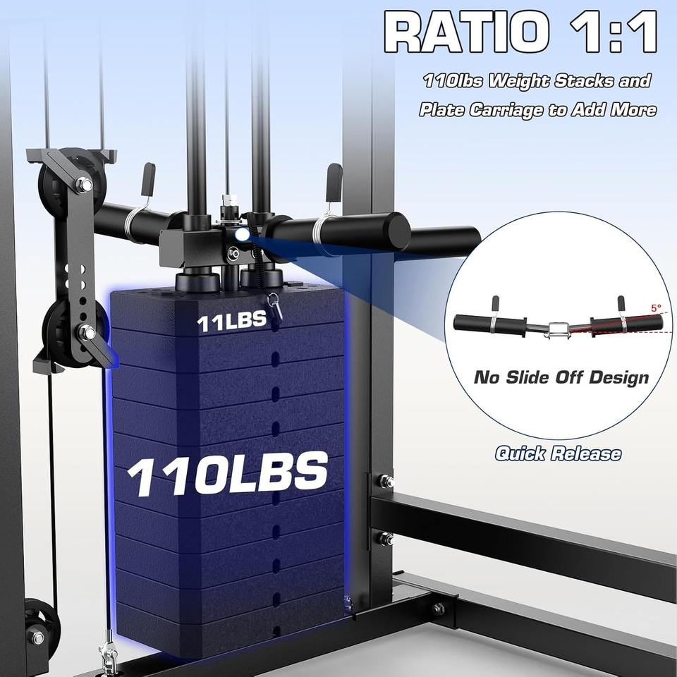 Máquina con pilas de pesas de 220 libras, sistema de gimnasio multifunción para el hogar, rack de potencia, sistema de cable cruzado, entrenamiento de dominadas.