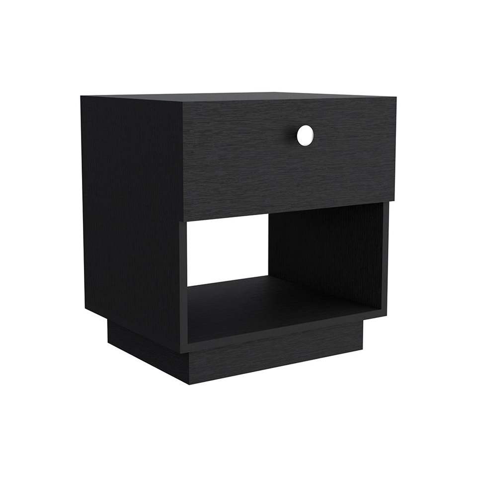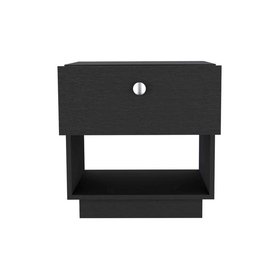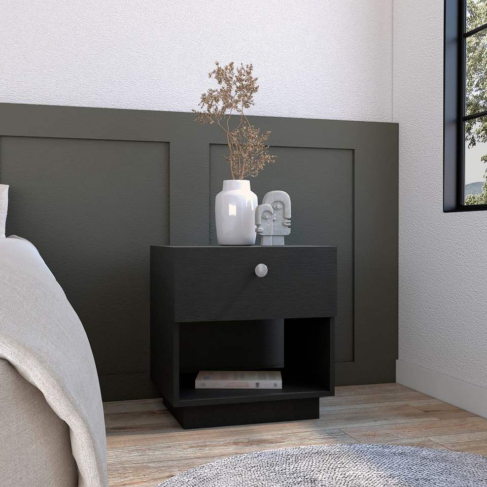 Mesita de noche Macon con un solo cajón y estante de almacenamiento abierto, color negro-Depot E Shop