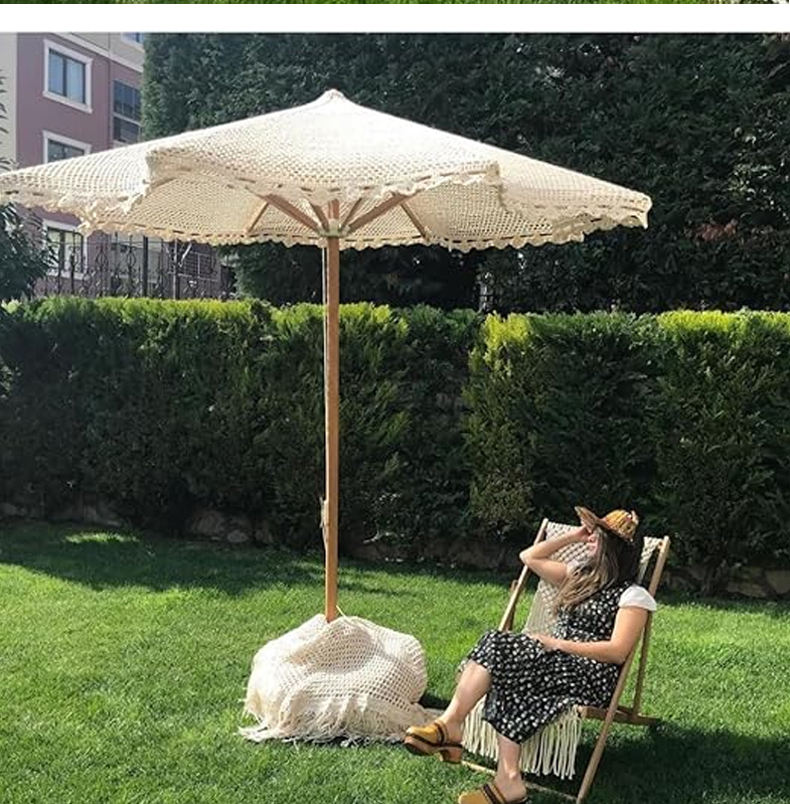 Sombrilla de Macramé Tejida a Mano, Estilo Bohemia, con Cuerda de Algodón, Poste de Madera, Borlas Hechas a Mano, Toldo Tejido, Sombrilla de Playa