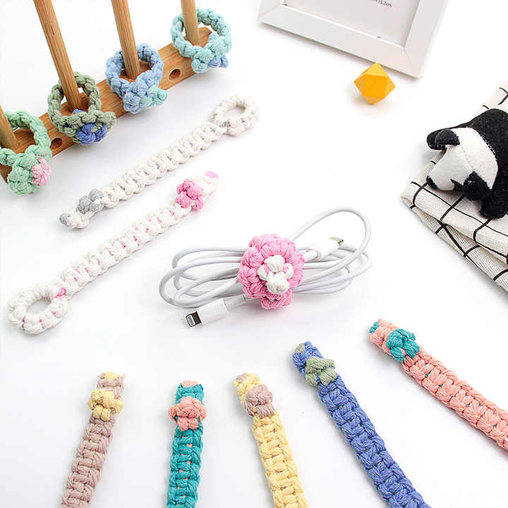 Kit de Macramé de 2 Piezas, Organizador de Cables DIY, Estilo Bonito, Soporte de Cable de Poliéster, Correa para Gestión de Cables de Datos, Tutorial Incluido