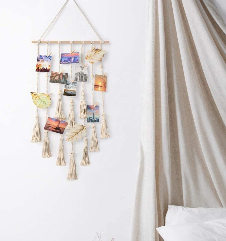 Nombre del Producto:Colgante de pared de macramé para fotos con pinzas de madera