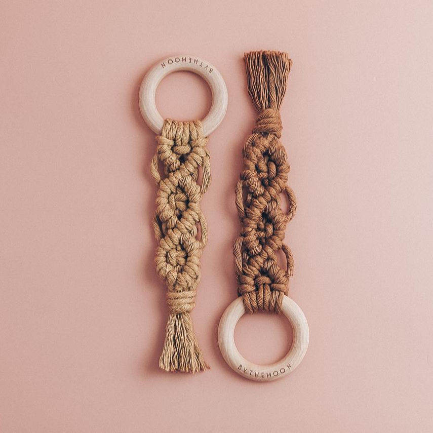 Macrame ganchillo sonajeros juguete mordedor, SONAJA de madera