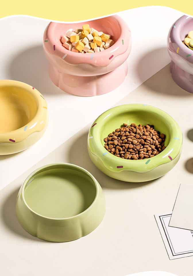 Macron Colors - Juego de Platos Elevados de Cerámica para Mascotas, Platos Dobles para Perros y Gatos
