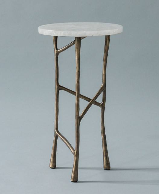 Made Goods Genevier Base de trípode de aluminio Mesa auxiliar con parte superior de piedra blanca Mesa auxiliar moderna Muebles de sala de estar