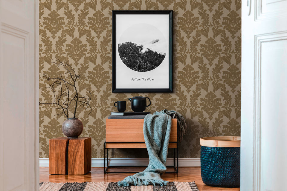 Papel Tapiz Damasco de Alta Calidad Estilo Tradicional, Hermosamente Elaborado a Mano en Alemania para Apartamentos y Uso en Entretenimiento