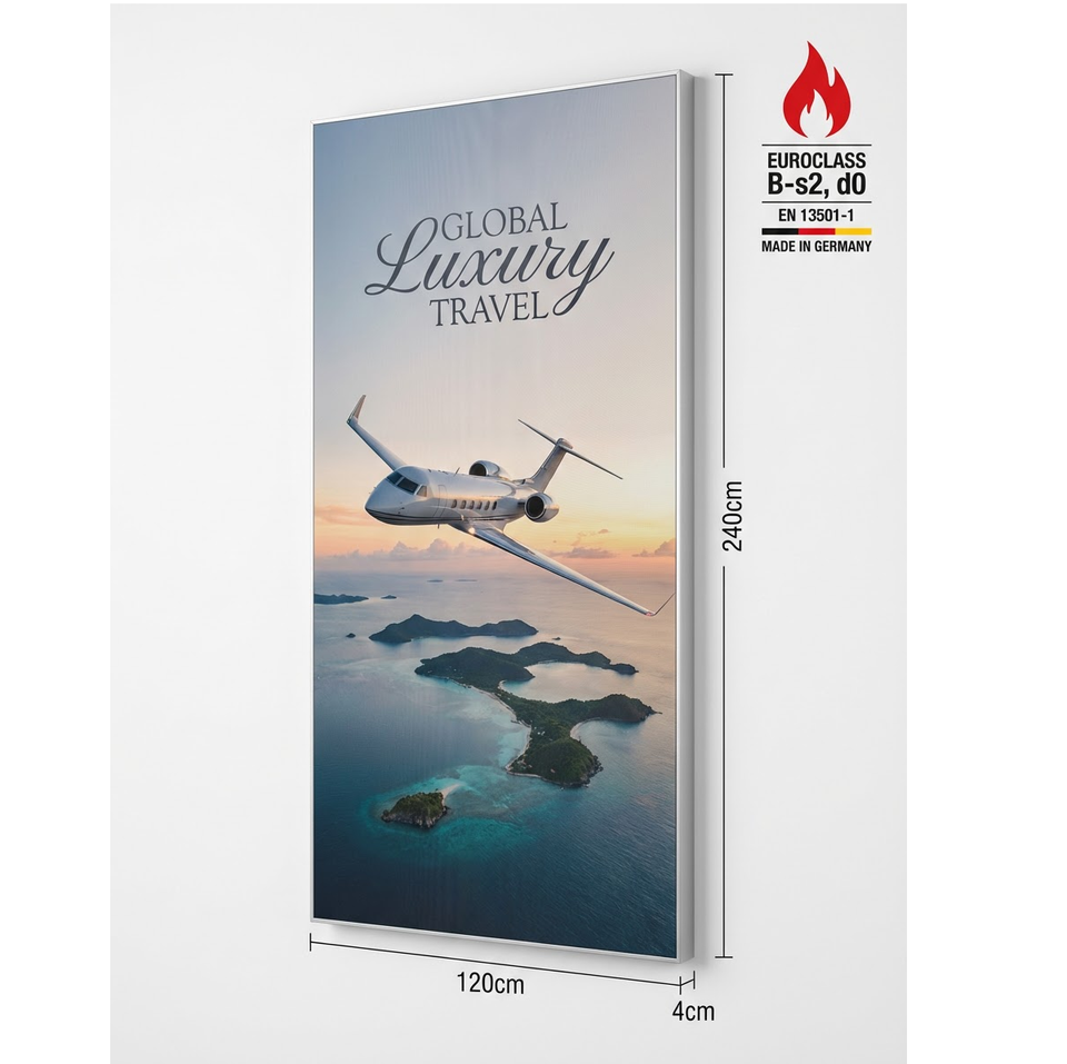 Pancarta Publicitaria Alta para Centros Comerciales y Aeropuertos, Fabricada en Alemania, Lentiprint Mall Atrium Display, 120×240cm, Formato Vertical, 20 LPI, Euroclase B