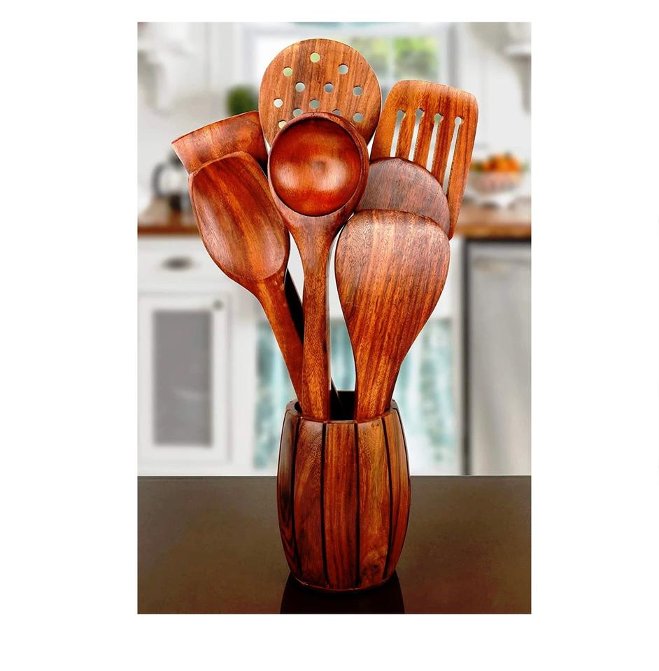Juego de utensilios para ensalada hechos en India, ecológicos, aptos para lavavajillas, para cocina casera.