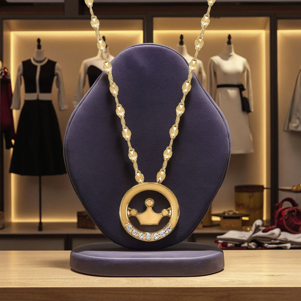Número de Modelo:14K GOLD Cubic Crown Ring Necklace