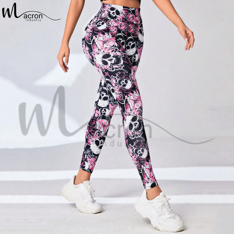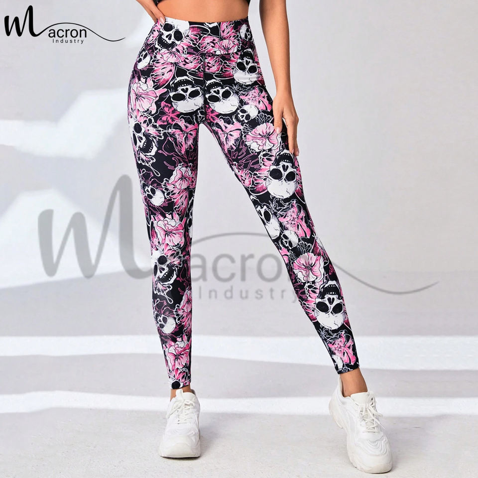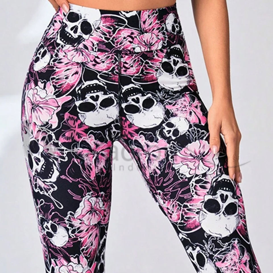 Leggings Deportivos de Cintura Ancha con Estampado Floral y de Calavera, Transpirables, de Primera Calidad, Hechos en Pakistán, del Mejor Proveedor