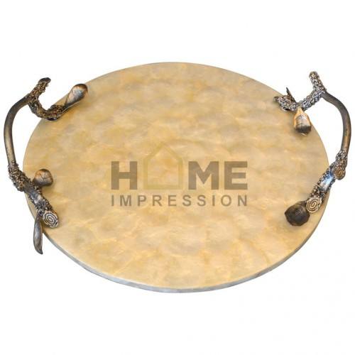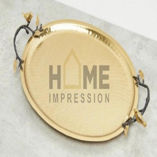 Bandeja para servir con asas redondas de Metal de cobre, bandeja para servir comida elegante y sencilla para el hogar, organizador de cocina a bajo precio