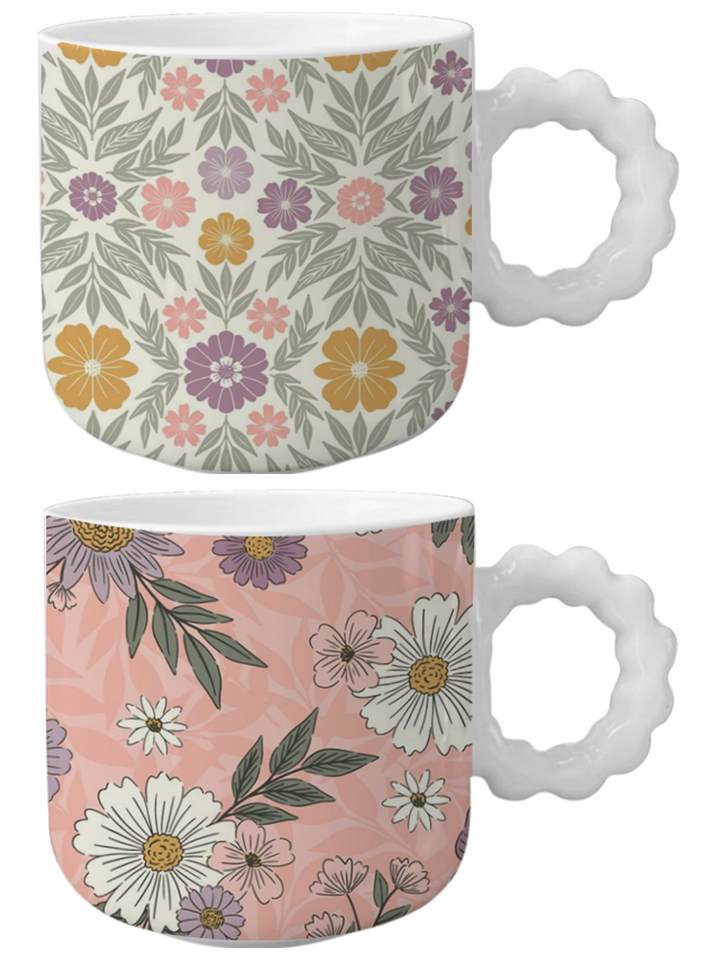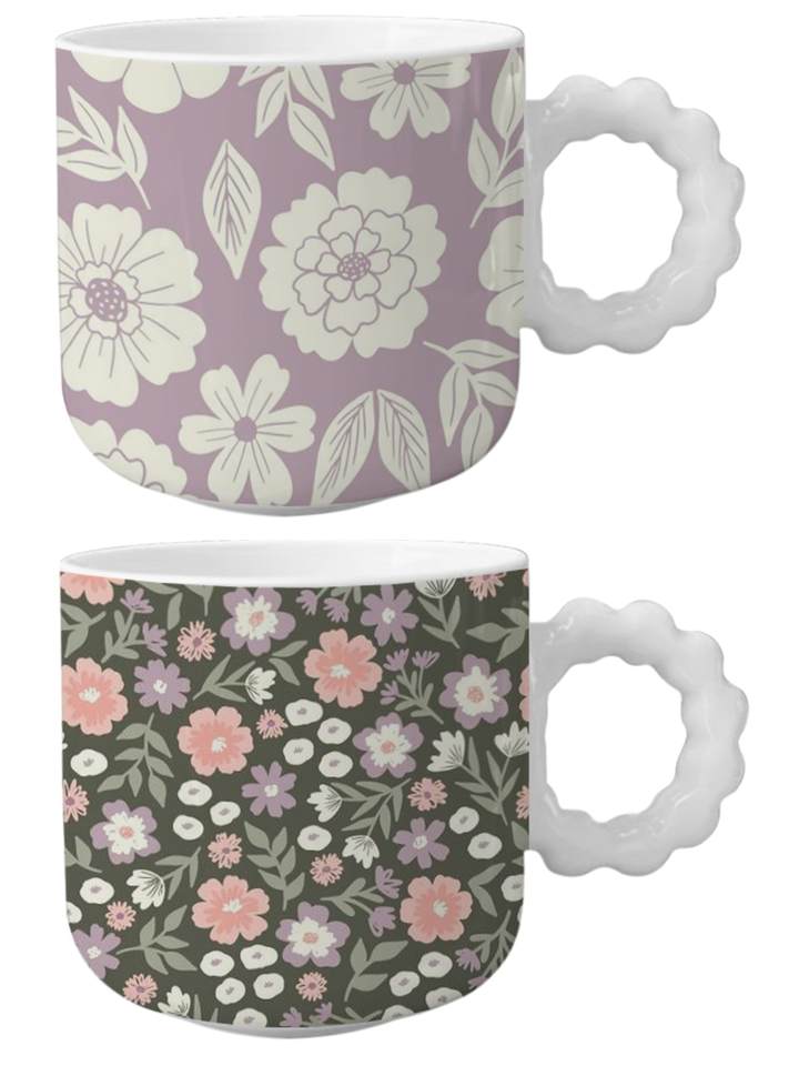 Tazas de Té y Café Ecológicas y Duraderas Hechas en China, Diseño Único de Taza de Cerámica Roja con Flores y Estilo Elegante