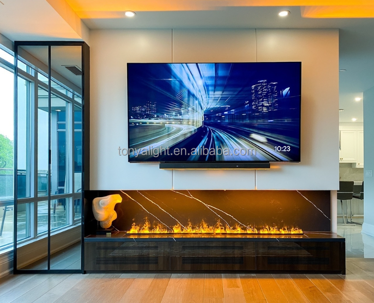 Chimenea eléctrica de control inteligente hecha en China, chimenea de vapor de fuego de vapor de agua 3D para debajo de la TV de 2000mm