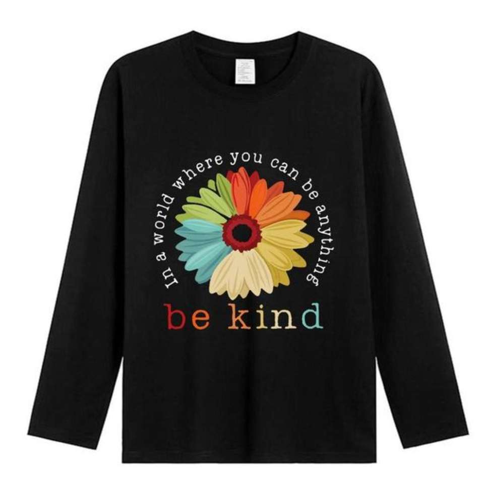 Camiseta de algodón de manga larga hecha en la India para hombres y mujeres en un mundo, tu puedes ser cualquier cosa, camiseta con diseño de flores estampadas Be King