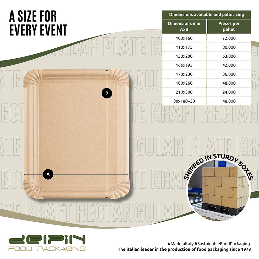 Plato de cartón Kraft rectangular desechable ecológico personalizable hecho en Italia diferentes tamaños listo para enviar