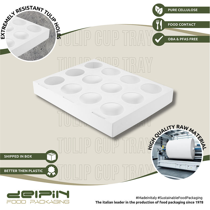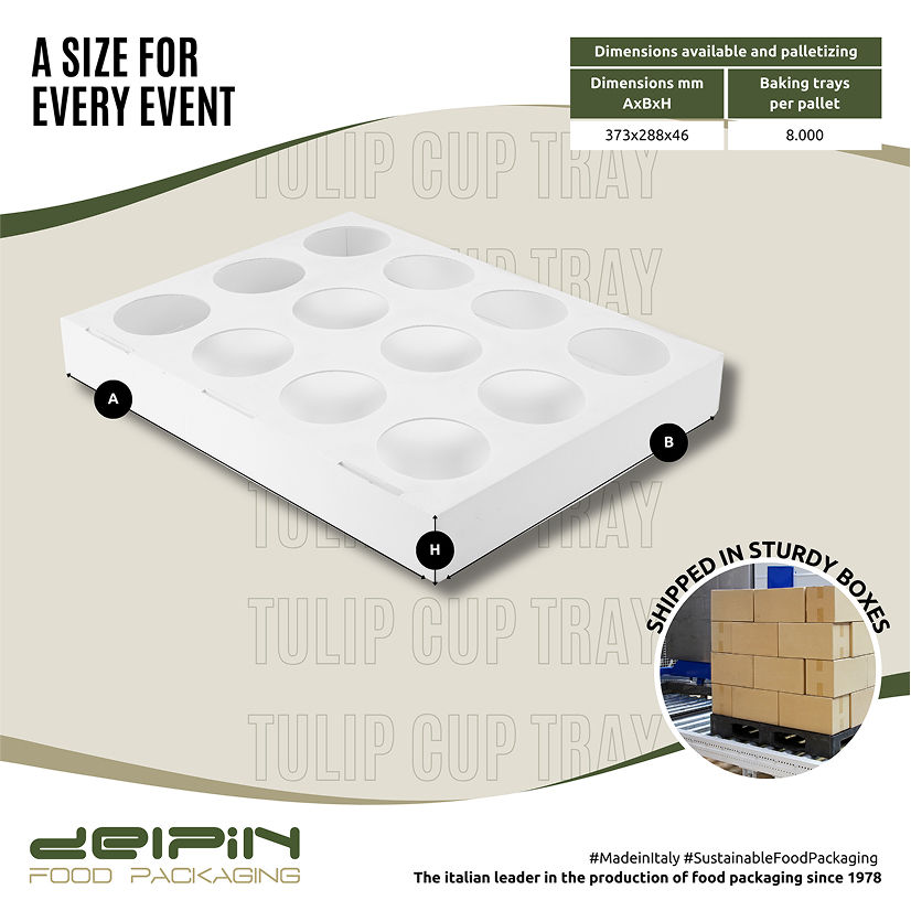 Hecho en Italia Papel personalizable Desechable Blanco Tulipán Taza Bandeja Cupcake Contenedor Muffin Cesta Diferentes tamaños
