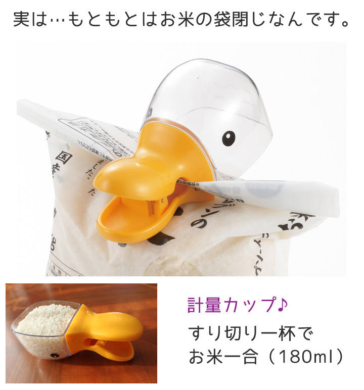 Clips para Bolsas de Alimentos en Forma de Pato, Hechos en Japón, de Metal, 2 Piezas, con Cuchara Medidora, Sellado a Prueba de Humedad