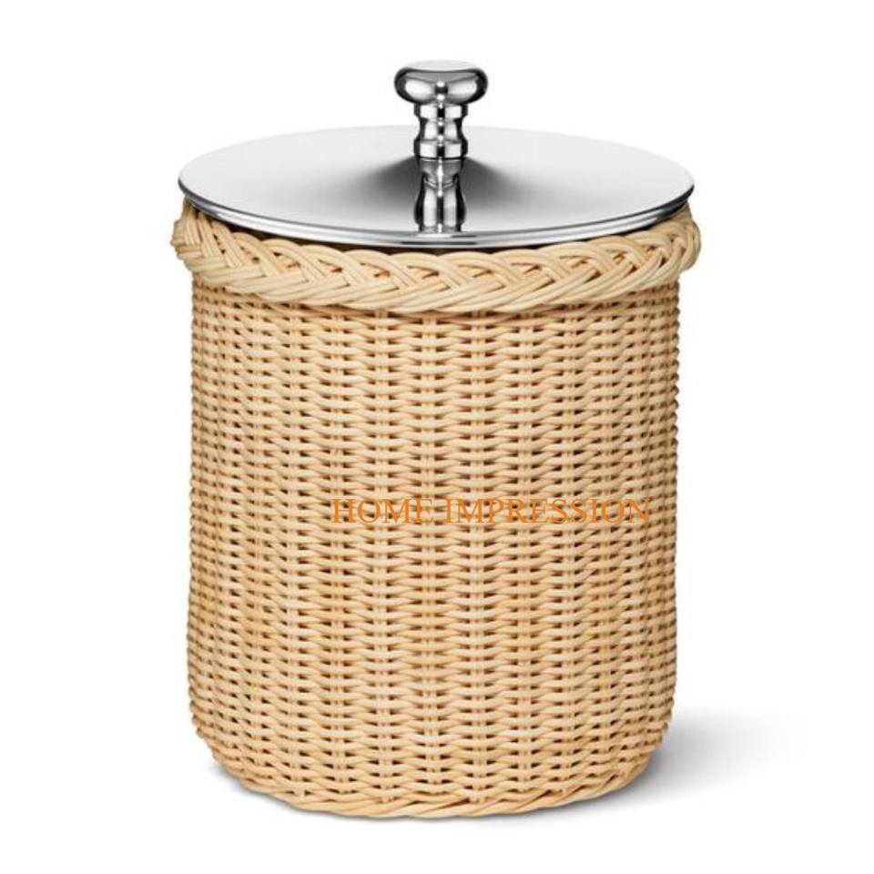 Cubo de hielo de vino de forma redonda de ratán con tapas de metal Calidad de lujo Cubos de hielo de vino de gran tamaño para bodas y hoteles Bar