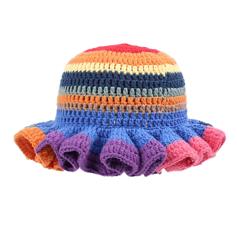 Madeshine hecho a mano rayas Arco Iris ganchillo Mujer adolescente al aire libre con volantes ala invierno pescador cubo gorro personaje