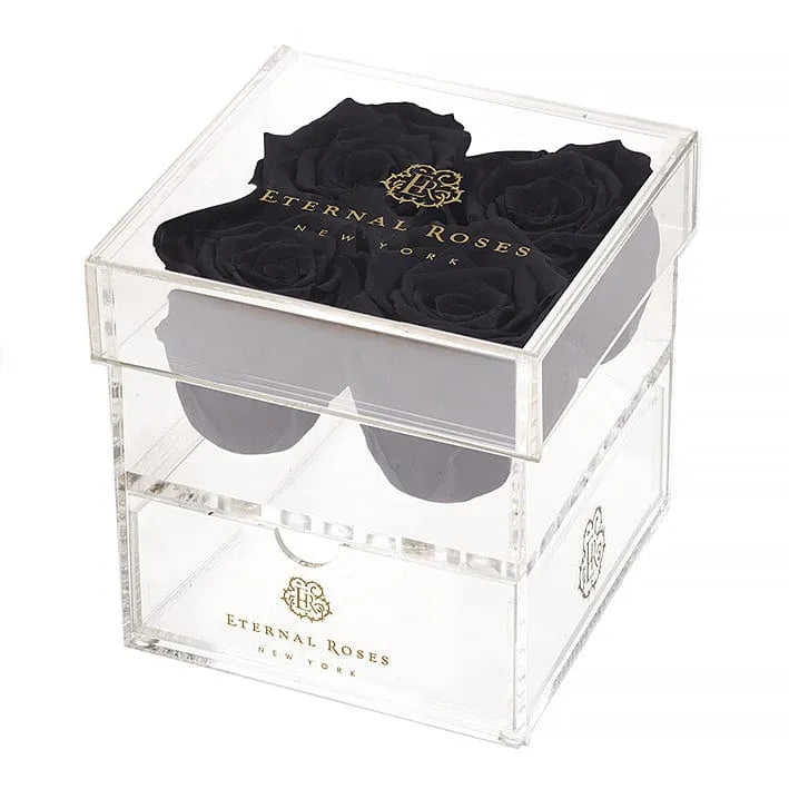 Madison Four Rose Midnight Black Roses Arrangements Plastic Gift Box for Living Room Decor