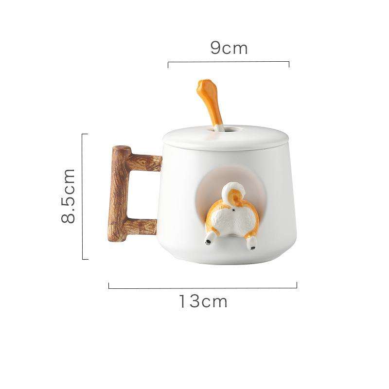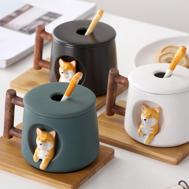 Madou-taza de cerámica con dibujos de animales en 3D para Shiba Inu, juego de tazas con cuchara y tapa, regalo de pareja personalizado, 420ml