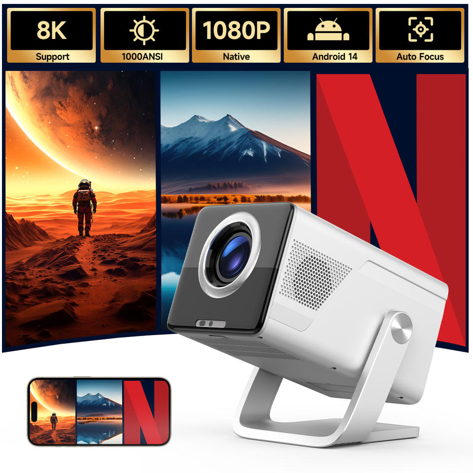 Proyector Magcubic con Enfoque Automático, Android 14, Compatible con 8K, 1000ANSI, Nativo 1080P Full HD, Allwinner H726, Portátil para Cine al Aire Libre