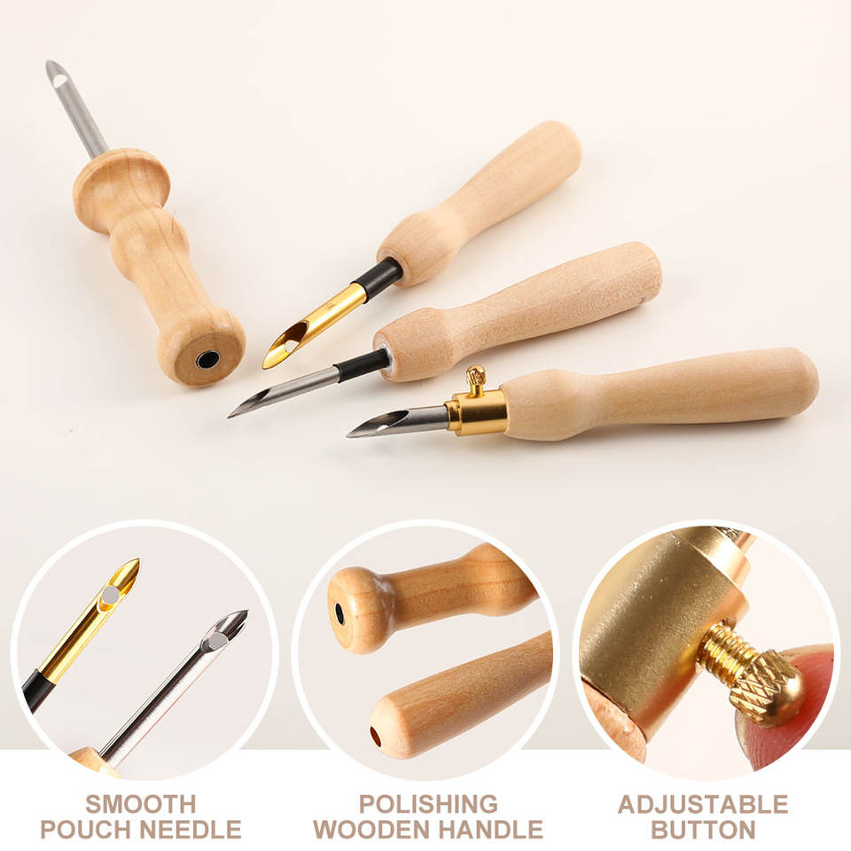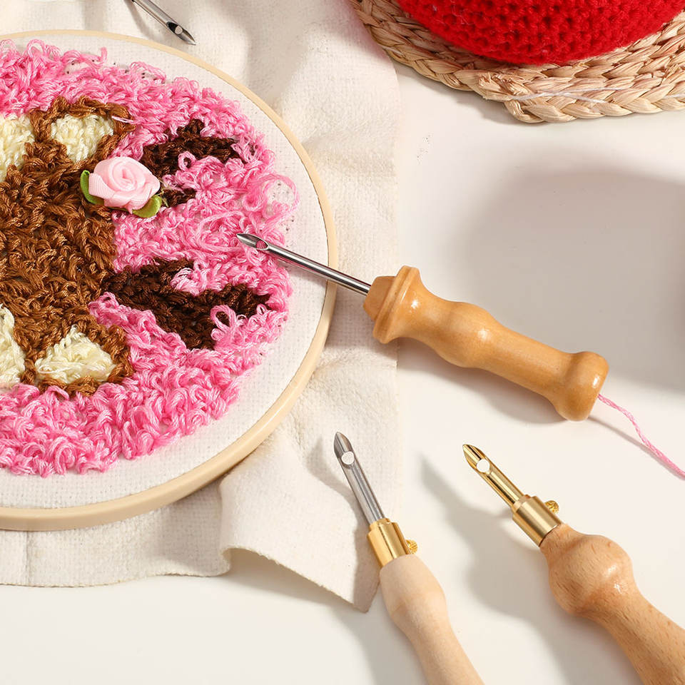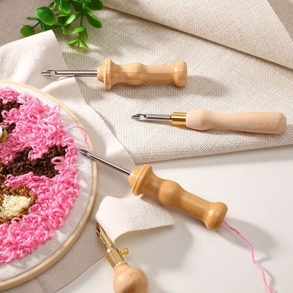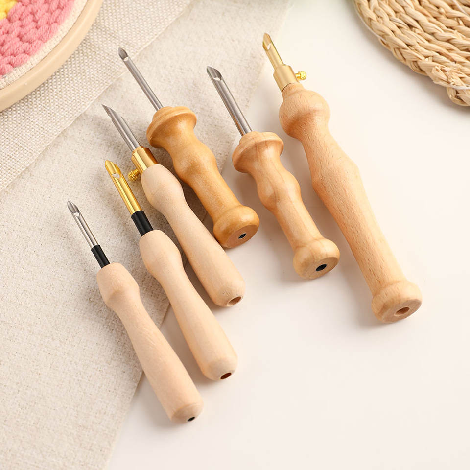 Juego de Enhebrador de Fieltro con Aguja de Perforación Mágica, Mango de Madera, Alfombra, Hilo, Aguja, Bordado, Herramientas de Bricolaje