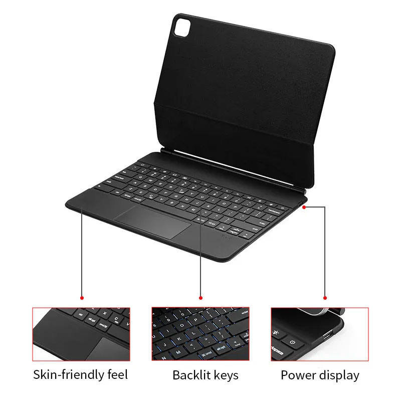 Estuche de teclado mágico de 12,9 pulgadas para 2022/2021/2020/2018 Ipadpro 12,9 Touchpad Mouse Funda de cuero RGB Tableta magnética Usb óptico