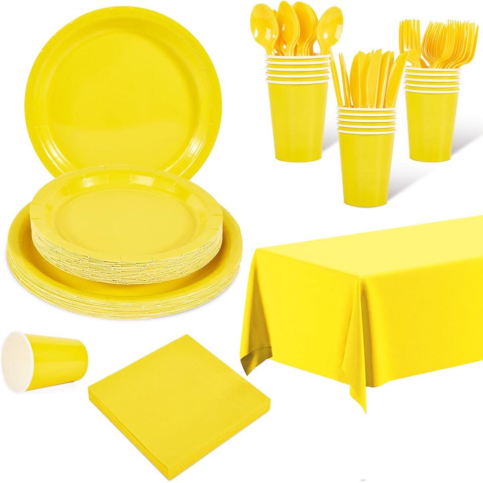 Juego de Vajilla Desechable con Platos, Vasos y Servilletas de Papel con Diseño de Luces Mágicas para Fiestas