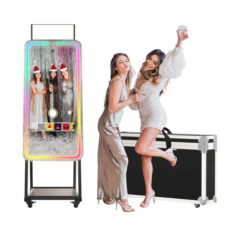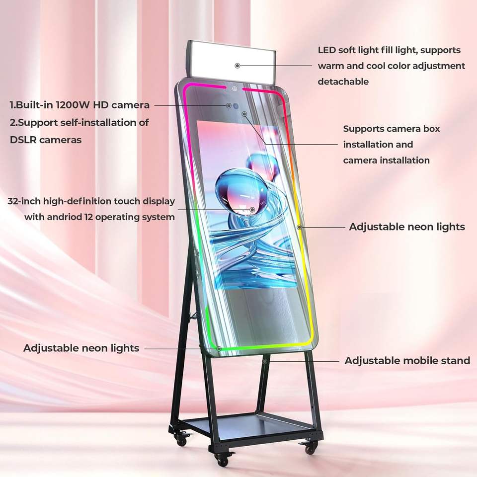 Cabina de Fotos con Espejo Mágico y Pantalla Táctil, con Luz de Fotografía Profesional, Cámara HD de 1200W Píxeles, Luz Ambiental RGB