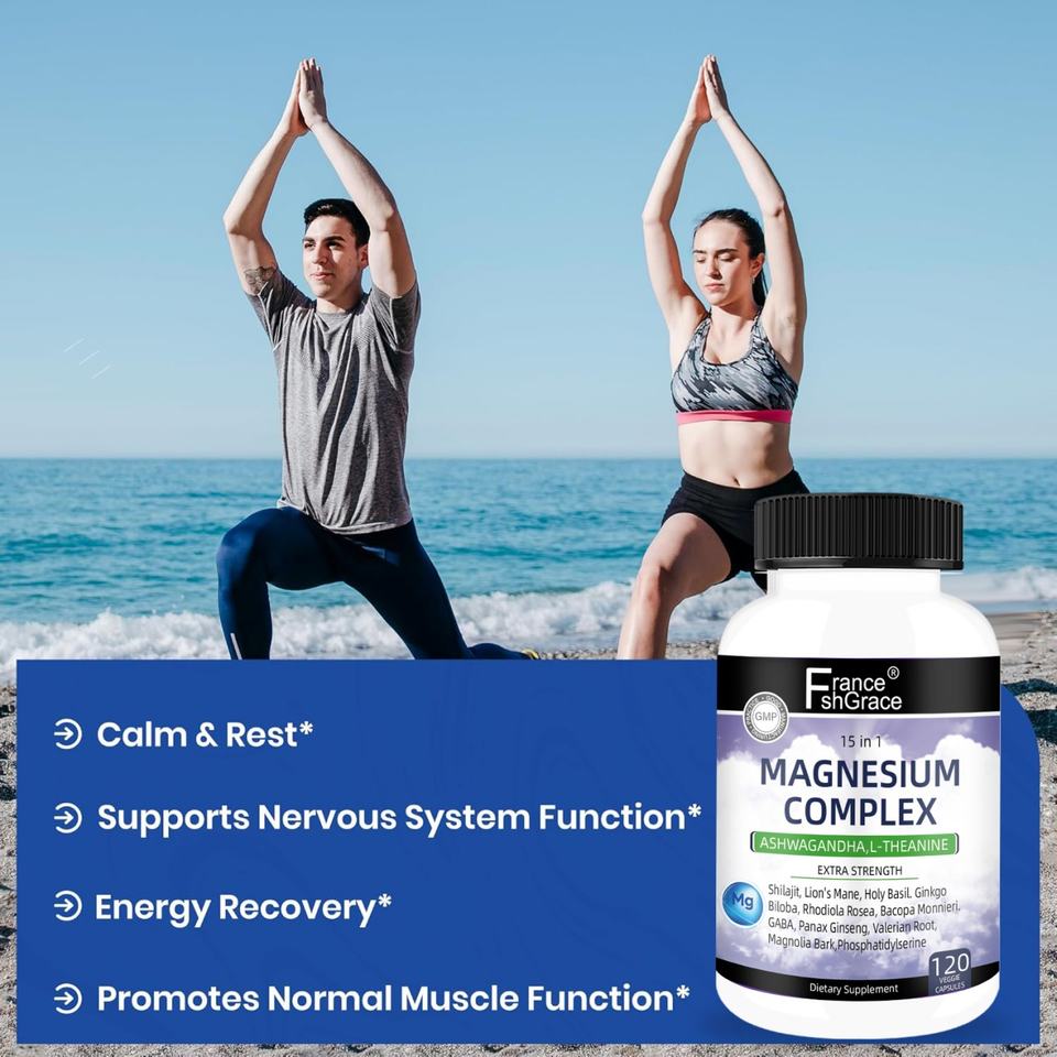 Cápsulas de Complejo de Magnesio, Favorecen una Rutina Nocturna Saludable, Suplemento de Complejo de Magnesio, 120 Cápsulas