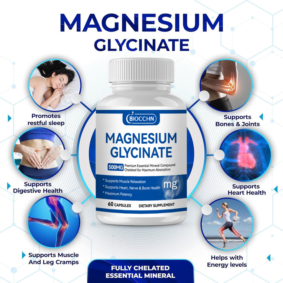 Cápsulas de Glicinato de Magnesio de Alta Absorción para Dormir, Alivio del Estrés, Apoyo Energético, Vegano, Sin GMO, Fabricante OEM de Marca Privada
