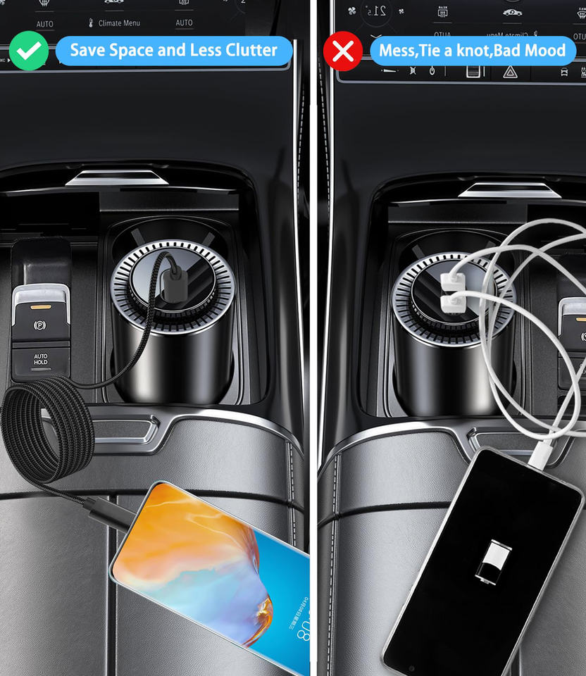 Cable USB C de nailon autoenrollable de 66W, 1m, 3A, con accesorios de organización trenzados, carga rápida para cámaras y auriculares