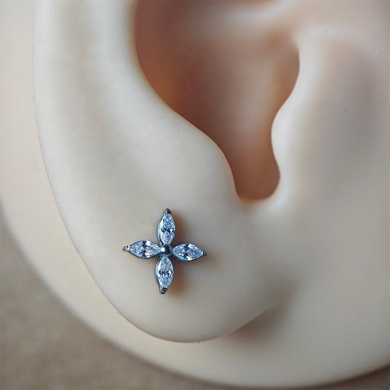 Pendientes de Titanio G23 de Grado Implante, Diseño de Mariposa con Zirconia, para Helix, Joyería Fina para el Cuerpo, Venta al Por Mayor
