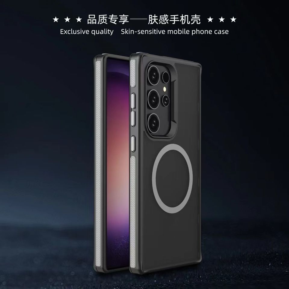 Cubierta trasera de acrílico mate magnético para Samsung Galaxy S24 Ultra TPU Fundas para teléfonos móviles con botón independiente