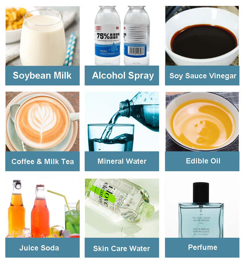 Cerveza, Agua pura, Leche, Jabón líquido, Agua, Aceite, Alcohol, Zumo, Espíritu, Soda, Té, Shampoo, LicorMaterial de relleno