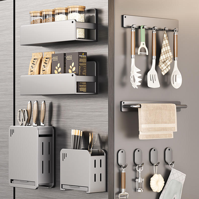 Estante magnético para refrigerador, estante de almacenamiento montado en la pared para palillos, cucharas, cuchillos, condimentos, organizador de cocina, acero al carbono