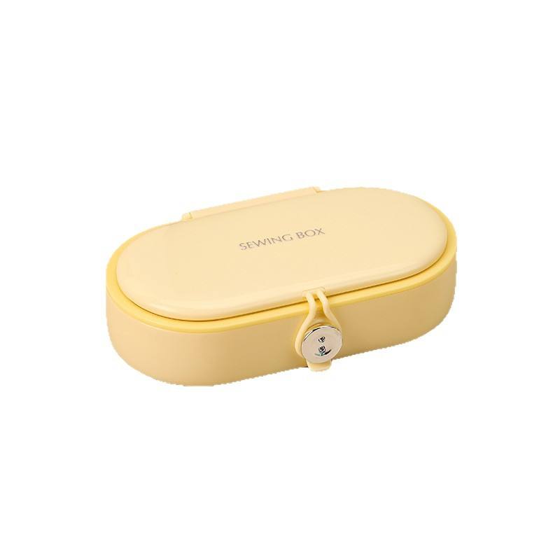 Caja de agujas e hilos magnéticos color amarillo leche.