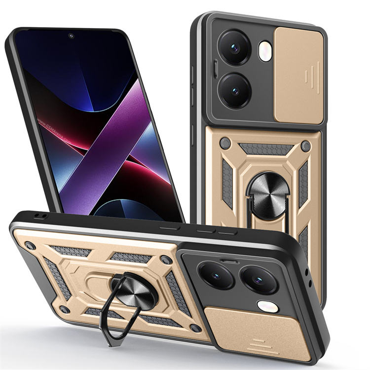 Cubierta de protección de lente de ventana de cámara deslizante magnética para Xiaomi Poco X7/X4/X6 Pro 5G TPU PC Ring Holder Phone Case