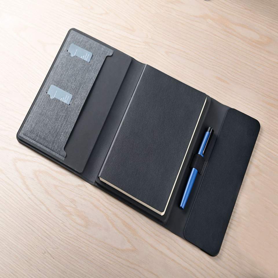 Features:A5 NOTEBOOK/WIRELESS CHARGING/CARD HOLDER
