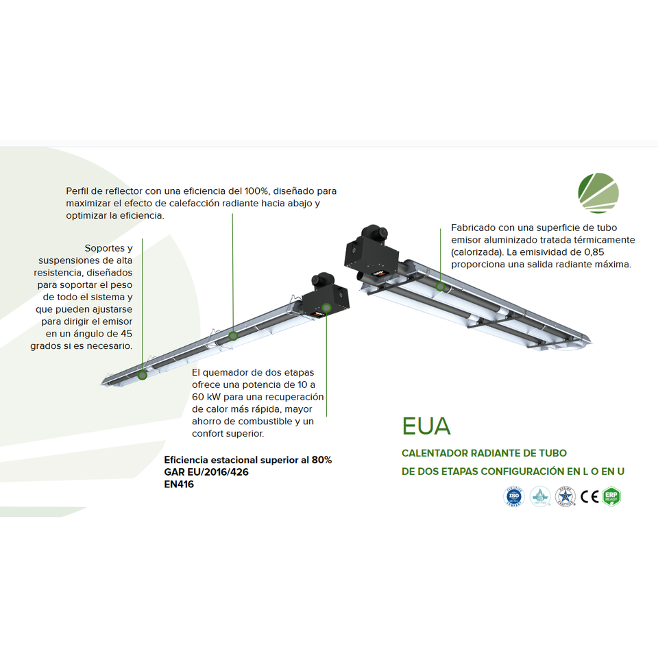 MagnoHeat® EUA / EUAV: Calentadores De Tubo Radiante, De Dos Etapas, Lineales Y En Forma De U