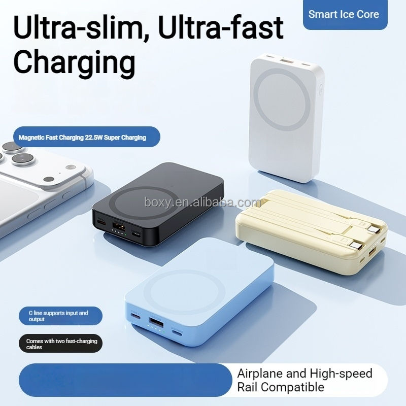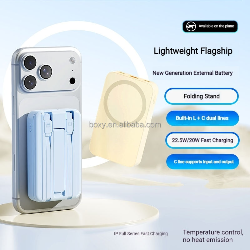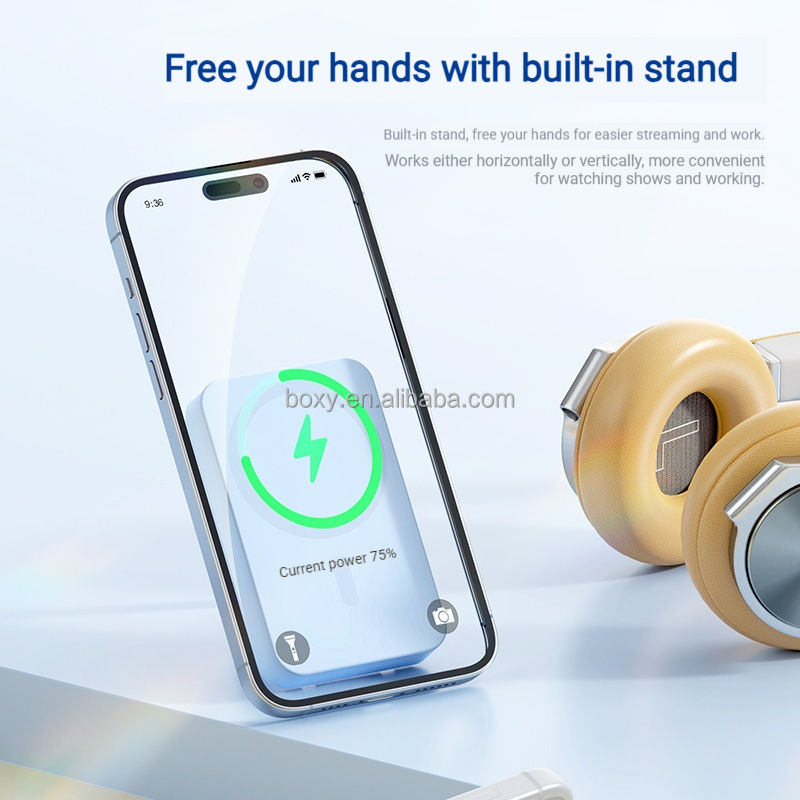 Banco de Energía Magnético Magsafered de Fábrica, Mini Banco de Energía de 10000 mAh, Cargador Inalámbrico Magnético de 15 W, Seguro y Rápido, Soporte Portátil y Tarjetero